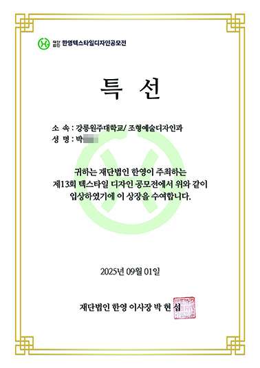 2025년도 섬유디자인 전공 제 13회 한영 텍스타일디자인 공모전 수상