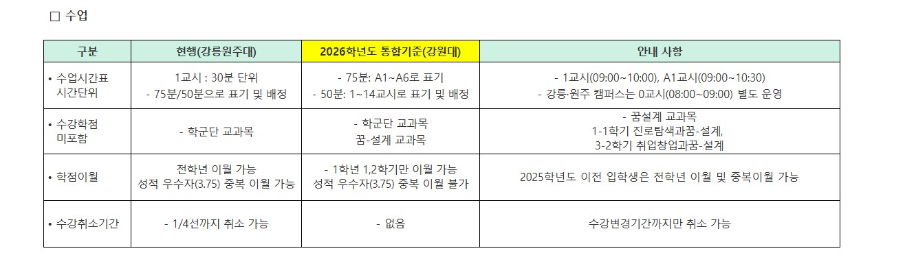 2026년 통합대학 교육과정 및 학사제도